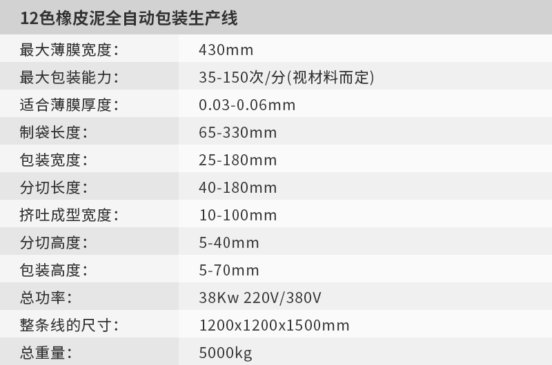 本機適用于多色的橡皮泥自動包裝可定做6色,12色等