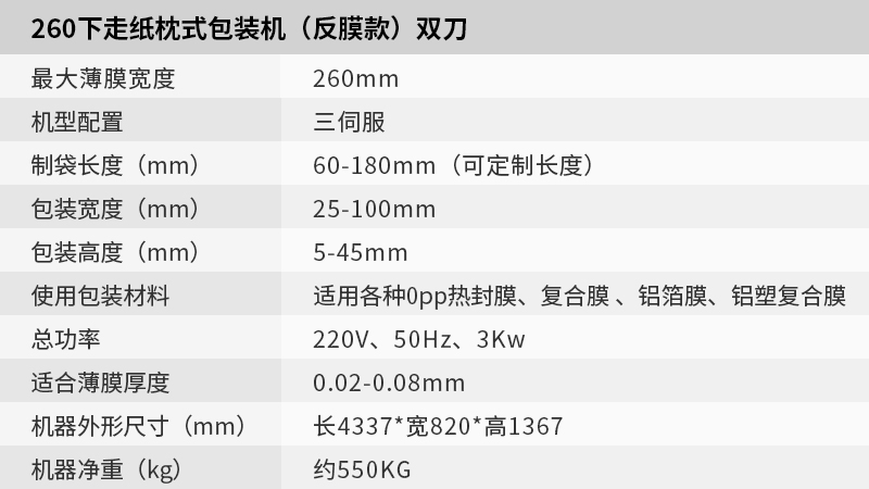 KD-260下走紙枕式包裝機(反膜款)雙刀