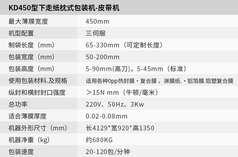 KD-450下走紙枕式包裝機-皮帶機